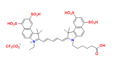 Cy5.5酸(Cy5.5)已用于標(biāo)記生物分子,用于熒光成像和其他基于熒光的生化分析。它們廣泛用于標(biāo)記肽,蛋白質(zhì)和寡核苷酸等。Cy5.5?染料是最常見的紅色熒光團(tuán)中的一種。